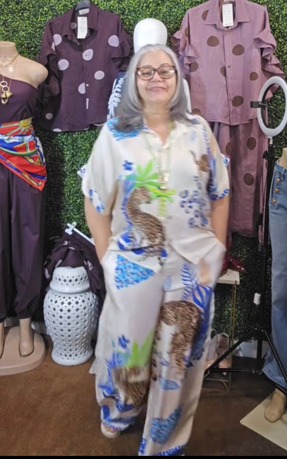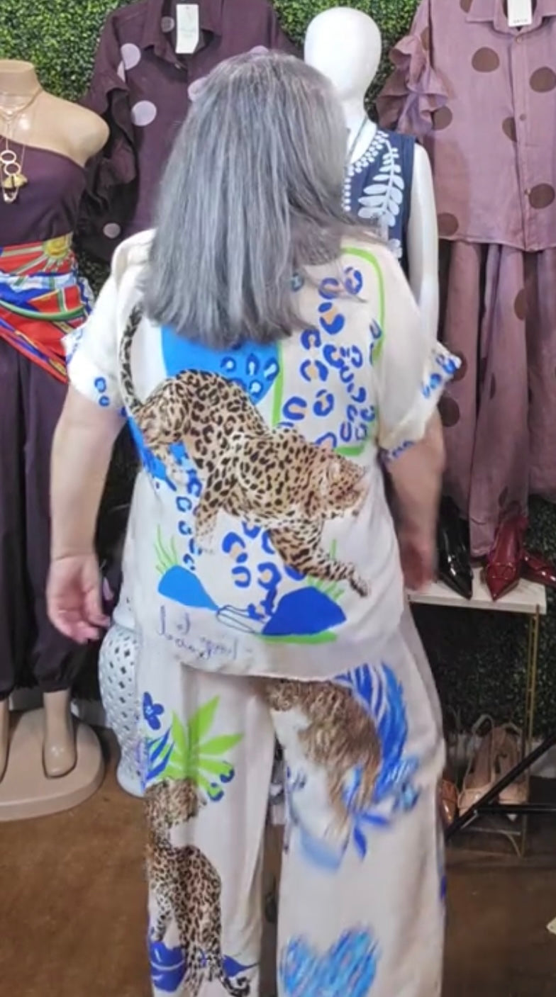 Este conjunto de blusa y pantalón es la elección perfecta para un look elegante y cómodo. La blusa cuenta con un corte moderno y la combinación de colores es ideal para cualquier ocasión, ¡Ideal para cualquier mujer que busca estilo y comodidad en un solo conjunto!