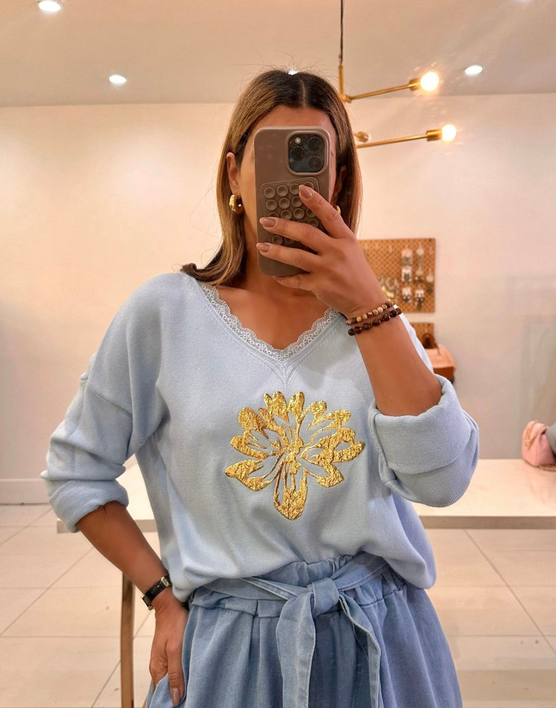 Este suéter Barby es la pieza perfecta para añadir un toque de elegancia y sofisticación a tu guardarropa. Con su adorno dorado, este suéter no solo te mantendrá abrigada, sino que también te hará destacar en cualquier ocasión es una inversión que no te arrepentirás de hacer.